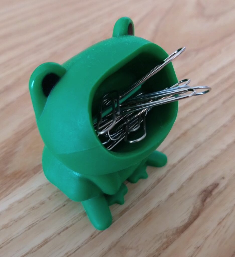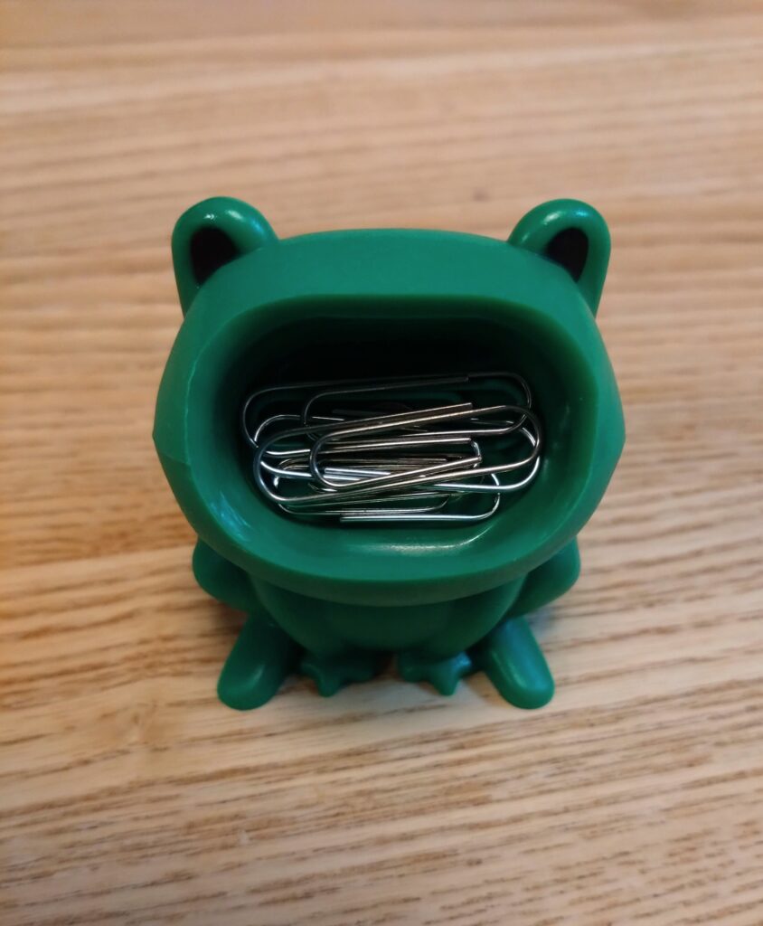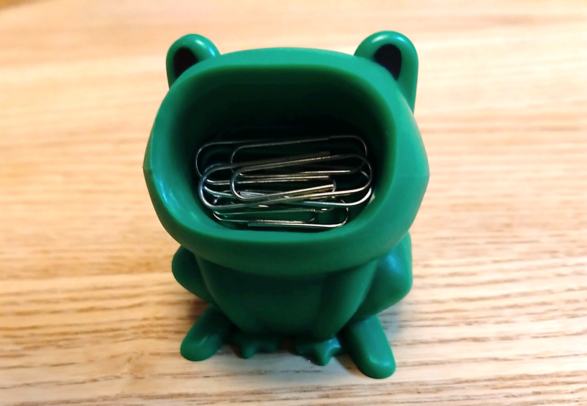 作業中に、口いっぱいにクリップを食べているかわいいカエルの姿を見ると、疲れが飛んでいくかもしれませんね♪