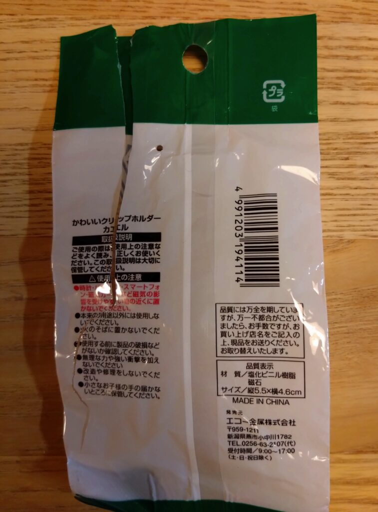 また、100円商品なので耐久性は低めかな・・?と感じています。落としたり、強い力で引っ張るとプラスチック部分が割れてしまうかもしれません。ご注意ください。
