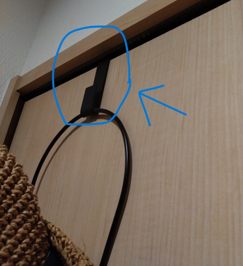 付属のフック↓がついているので、これを取り付けたい場所に引っ掛けるだけで設置出来ます♪